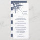 Coastal chic wedding menu in nautical navy, harbor blue & white features your starter courses, entrees and desserts in elegant lettering, with your names and wedding date accented by a vintage hand drawn style nautical compass rose. Coordinates with our True North collection for nautical, beach or summer weddings and celebrations.