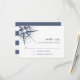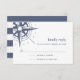 Coastal style RSVP card features your desired response date and custom accept/decline wording in navy blue, accented with a vintage style nautical compass rose illustration in muted harbor blue. Designed to match our True North wedding invitations and accessories.