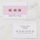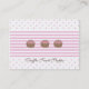 Add the cute factor to your sweet shoppe with these girly business cards from Kustom By Kris. The front features three delicious truffles on a pink striped background with pink polka dots. Add your business name to the front and contact details to the back, along with a punch incentive to encourage repeat business.