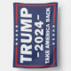Trump 2024 house flag features the text Trump 2024, Take America Back with a red border and white stars. Show your support for President, Donald Trump for the 2024 election with this weatherproof house flag.