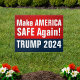 Make America safe again, in times of trouble and turmoil, stand with law enforcement, order, police officers and Trump. For the pro-Trump supporter! Trump is running for re-election in 2024. Vibrant red and navy blue with rays of light graphics. #Trump2024 Decorate your yard with enthusiasm, expressing your patriotism and USA pride! Stylish and modern Trump 2024 sign to show how you feel about the current political and cultural environment.