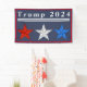 This vinyl banner, available in outdoor and indoor styles, features a patriotic design with the slogan 'Trump 2024' and red, white, and blue stars. Message MineByDesign for help with custom designs.