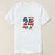The design could feature "45" and "47" prominently, as references to Donald Trump's presidencies (the 45th President of the United States, and potential future candidacy for the 47th). The numbers could be rendered in bold, impactful font to give them prominence, perhaps with a patriotic color palette of red, white, and blue.