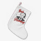 Perfect! Exactly what I ordered! I uploaded a picture of my blue chow, and the screen print was incredible. the back side of the stocking was the red and black checkered print. my puppy's name was also printed on the cuff of the stocking. PERFECT! Highly recommend this product! My puppy's name was screen printed onto the cuff of the stocking, the font was perfect!