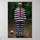 An anti Trump poster that features Donald Trump in prison stripes and dragging a ball and chain.