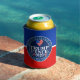 Personalize this patriotic TRUMP PENCE 2020 can cooler with a name, state, or both, for a one of a kind guy stuff gift. The round logo style design with red white and blue hearts is set on a background of red and blue with a thin white line in the middle. Fun for any patriot, guy or girl, this pro-Trump can cooler makes a great personalized gift.