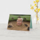 An anti Trump greeting card depicts Donald Trump buried to his neck in a sand trap with rats crawling around him and on him.