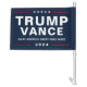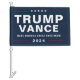Trump and Vance car flag on navy blue background, 2024 presidential election rally gear for Republican supporters, campaign and fundraising events.