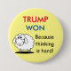 "Trump Won - Because Thinking is Hard!" with sheep Pinback Button