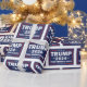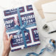 Celebrate the season with this festive Trump wrapping paper. Featuring the words Trump 2024 Take America Back with a navy blue background with stars and red border.