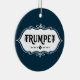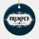 Trumpet in decorative text against a black or white emblem is a unique gift design for brass musicians, teachers and students in jazz band, concert and marching band.