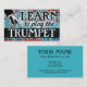 Colorful arty Learn To Play Trumpet business cards in turquoise, aqua, red, yellow. Trumpet musical instrument instruction business cards.