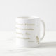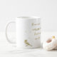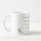Proverbs 3:5-6 - "Trust in the Lord with all thine heart" bible quote coffee or tea mug in calligraphy with birds & stars. White background with monochrome design.
