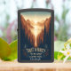 This design features a serene mountain landscape at sunrise, with a radiant sunburst illuminating a tranquil lake nestled between towering peaks. Silhouetted evergreen trees frame the scene, leading the eye towards a path of light reflected on the water. The inspirational message "TRUST IN YORSELF" and "YOU'RE ALREADY HALFWAY THERE" is displayed in a vintage-inspired, slightly distressed font, surrounded by decorative leaf details. The image evokes a sense of hope, perseverance, and the beauty of nature.