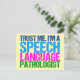 Trust me, I'm a SLP. A cute speech therapist gift for someone who works with children who take speech therapy. Features pretty pastel colors and can be customized with your own text.
