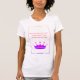 My overall review is that the T-shirt is nice, it fits true to size however the font is significantly smaller than advertised and you can't read it. The printing is unreadable and there is a strain to read it. It does not look like the advertised product. Maybe the shirt color is darker or a larger more visible font should have been used. Photos with and without flash and font is barely legible.