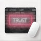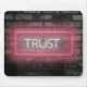 TRUST pink neon sign glowing on black brick wall with rustic texture