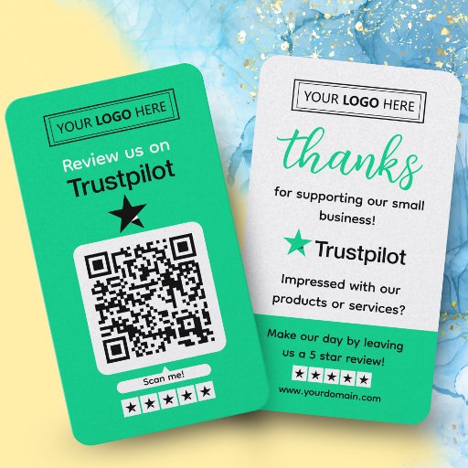 A simple custom business request to leave a Trustpilot review with scannable QR code. The versatile template can easily be personalized and edited with your company logo, graphic or photo, QR code and custom text. The review site logo can easily be replaced with another (eg. Google, Yelp, Facebook) to make a truly bespoke professional design to help you grow your business! Remember to add the unique link for the ‘write a review’ page for your business on Trustpilot for the scannable QR code. Need help? Feel free to contact me using the message button. I am happy to help with your personalization such as adding different icons, QR code generation and more!
