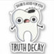 Truth Decay Funny Tooth Pun features a cute tooth with a cavity telling a fib. Perfect pun gift for family and friends who love cute tooth puns.