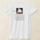 My overall review is that the T-shirt is nice, it fits true to size however the font is significantly smaller than advertised and you can't read it. The printing is unreadable and there is a strain to read it. It does not look like the advertised product. Maybe the shirt color is darker or a larger more visible font should have been used. Photos with and without flash and font is barely legible.