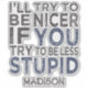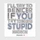 “I’ll try to be nicer if you try to be less stupid”. See my store for more items with this design.