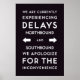 A familiar message typeset in a familiar font. Northbound and Southbound delays.