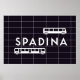 This sleek Spadina station poster features the vintage Toronto Subway typeface with the familiar streetcar and train decal and tiling.
