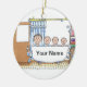 Lightweight, smooth, pure white ornament with nice sheen. Perfect size to be seen from across the room ... and to attract closer inspection! Price was great for ordering enough for the whole family! Clear, bold black design just as requested. Matches the order exactly. Just so nice!