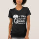 My overall review is that the T-shirt is nice, it fits true to size however the font is significantly smaller than advertised and you can't read it. The printing is unreadable and there is a strain to read it. It does not look like the advertised product. Maybe the shirt color is darker or a larger more visible font should have been used. Photos with and without flash and font is barely legible.