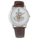 The watch looks really great! Very sharp and well done. The leather band is really nice, though for a man's watch I think it should be longer. Unfortunately, it isn't big enough for my husband's wrist but I will get a replacement because he is very excited to wear it!
