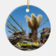Tucson is in the Sonoran Desert of the Southwest United States. And in this desert, grow many species of cacti. Here is a very young Teddy Bear Cholla, growing among the rocks. Ocotillo is growing in the background. This is an unique keepsake for any visitor to the Sonoran Desert area.
