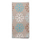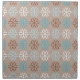 A tan background with a cute retro colored pattern of flowers in chocolate brown, white, blue/green and light blue.