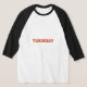 I bought the Men's Basic 3/4 Sleeve Raglan T-Shirt, White/Navy. It arrived on time for a gift and is of a great quality and fits perfectly! So cute! Zazzle has done it again! The printing was clear and filled in solidly.