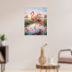 A stunning tulip flamingo stands elegantly in reflective spring waters where floral beauty meets graceful wildlife. Realistic flamingo anatomy blends with layered tulip petals, smooth stems, fresh leaves, and flowing feather textures in pink, coral, blush, and ivory tones. Mirrored water, sunrise mist, reeds, distant tulip fields, and soft pastel skies create a luminous upscale atmosphere. This chic fantasy bird design adds color and elegance to bathrooms, feminine interiors, bedrooms, or gift collections. Perfect for flamingo lovers, floral decor fans, and modern spring styling.