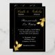 This is a 5' x 7" wedding invitation, shown in elegant black with gold foil accents. This is real foil trim, available in gold, silver, and rose gold. The foil accents include the bride and groom's name, a whimsical heart and horizontal line, a tulip flower design, and a foil outline on the front. the reverse includes an 'Our Special day' motif, with details about the wedding.