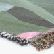 A quality printed throw has its advantages. This is a much finer weave throw than its loopier cousins, and though lighter, it is worth the investment for custom room accessorizing. The back is much prettier than the typical brown, and the fringe on the long sides very vivid, the selvage nicely done. Before photographing, I washed the throw in cold water, delicate, with a thicker woven throw the same size. On tumble dry low, this throw was dry in half the time as the other. This is a very practical quality if you use throws for furniture covers or to wrap up in frequently. The sleekness of the fabric makes it a great layer for accenting or protecting without the feeling of sitting on too much stuff. Perfect for napping or when you feel a light chill coming on. The color printing is beautiful and on this fabric, matched the design and color of my Photoshop image. This is an advantage for blending room fabrics and colors. The fringe on the short sides prints the colors from the design image and therefore varies from the side fringe. I streaked a white fractal line through the plaid pattern to give the illusion of weaving. This printed as crisp as an illusory thread, and put some white in the short side fringe, showing another advantage of print vs loomed- for artistic purposes, line lines, detail, and color integrity can be planned and preserved. My loomed throws have color limitations and more of a needlepoint texture. Print throws reproduce an exact image. The throw felt a little stiff straight out of the package, but this went away in the first delicate wash. Of course I searched the wash water for ink or bleeding and there was none.