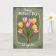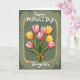 Designed with a centered bouquet of spring flowers set against a textured olive-green background, this card feels like a quiet hug between close friends ❤️. Soft pink and sunny yellow tulips alternate through the cluster, their petals shaded with gentle highlights that make them look fresh and slightly dewy. Green stems gather neatly at the base, tied with a small golden-yellow ribbon that adds a cozy, celebratory touch. An imperfect golden border surrounds the bouquet, like a loose frame drawn with affection, giving the scene a relaxed, intimate look. Near the top, a short line of white cursive lettering sits above the flowers, and a matching single word appears below to balance the layout. The soft, painterly backdrop keeps the focus on the blooms while adding a calm, welcoming atmosphere, with a hint of romance in the warm color pairing 🌼. The gold border has a subtle shimmer, and the white cursive text stands out clearly against the olive-green field.