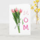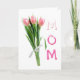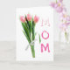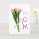 Beautiful pink wird Mom and pink tulips adorn the front and make the perfect 1st impression. Inside, the wording is "mom,hope your day blooms bright and beautiful". The perfect finishing touch on the back wishing your mom love and happiness.