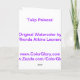 'Tulip Palooza' is a loose watercolor that can add zazzle to any occasion. Choose your message and brighten someone's day! A matching postage stamp is available to jazz up your envelope.