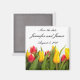 A photograph of a beautiful group of tulips is the feature of this save the date wedding magnet. The script is customizable for your names, dates, and any other wedding information you choose to put on it.