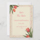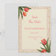 Imagine a Save the Date card featuring a simple yet elegant design called "Tulip Tango." The card's borders are adorned with delicate tiny flowers, reminiscent of tulips, adding a touch of charm and sophistication. These tiny floral details create a romantic vibe, evoking feelings of love and celebration.