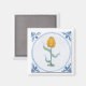 Vintage blue and white delft tile art of yellow tulips and simple floral elements in blue with a hand painted look.