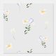 This is a seamless watercolor image on a transparent field. I have added a pale blue background, and the print is also lovely in white, but can be customized exactly as you wish. The design is a pattern of soft watercolor print interspersed white daffodils with green leaves and satiny appearing lavender and white tulips.