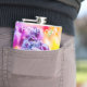 Colorful violet, purple, pink tulips on a flowerbed. Virtually all the rainbow colors present. Bright and positive floral scene. Customizable hip flask for anyone. You can change the image and you can change or delete the template text Honey Dew.