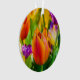 Colorful tulips on a flowerbed. Virtually all the rainbow colors present. Bright and positive floral scene. Macro photography.