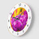 Great price for a very nice product. Arrived a day early - unheard of these days. The outside gold area has a little more orange tone to it than shown in the picture. Great packing so product can't get damaged. I used the same packing to forward the clock to my brother and sister-on-law for the 50th wedding anniversary. Printing was just as expected - lovely!