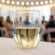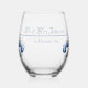 Offer a memorable keepsake with this customizable Delft Blue Tulip Stemless Wine Glass. Featuring the classic blue and white floral design, this glass is perfect for wedding favors, bridal party gifts, or as a signature piece for the head table. The front is fully customizable to include the couples' names Mr & Mrs Johnson, a special date 16 October 20XX, or a role like Mother of the Bride for personalized gifting.
