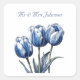 Celebrate your union with this elegant wedding sticker featuring a beautiful watercolor illustration of three blue tulips. The design exudes a delicate and sophisticated charm, perfect for adding a personal touch to your wedding favors, stationery, or décor. The customizable text at the top allows you to easily personalize the sticker with your names, wedding date, or a special message, making it a unique and memorable keepsake for your special day. The soft blue hues and floral design evoke a sense of romance and timeless beauty.