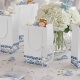 Present your wedding favors in style with this elegant white paper gift bag. The bottom of the bag features a beautiful watercolor illustration of Delft blue tulips, adding a touch of classic Dutch charm. The crisp white background allows the delicate blue floral design to truly stand out, creating a sophisticated and memorable presentation for your guests. Perfect for holding small gifts and treats, these bags will add a refined touch to your wedding celebration.