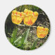 This magnet features a photograph of some pretty yellow tulips with red flame patterns on them, basking in the light of the sun in my front garden.